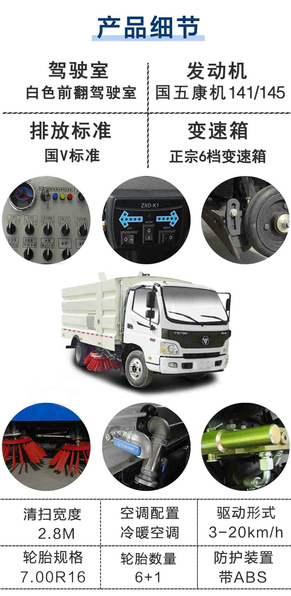 | 其他 | 車輛兩側為專用作業裝置,后防護采用冷彎型鋼/Q235-A,螺栓連接。后防護截面高度尺寸140mm,截面寬度尺寸50mm,下邊緣離地高度400mm。ABS廠家:威伯科汽車控制系統(中國)有限公司,型號:44600XXXX0. | ||