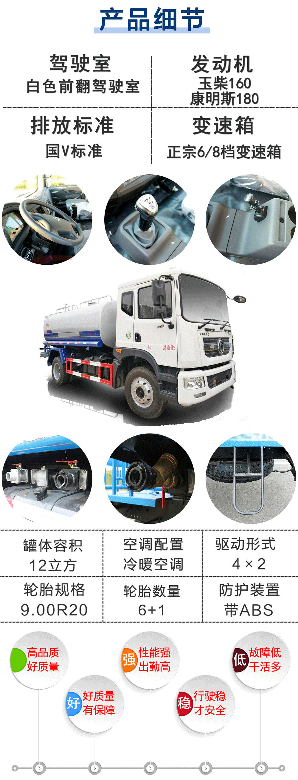 | 其他 | 1、運(yùn)輸介質(zhì):丙酮水溶液,密度:972千克/立方米,罐體有效容積:9.87立方米,整車長度、罐體外形尺寸(長×長軸×短軸)、軸距與后懸的對應(yīng)關(guān)系為(mm):8200/(4500×2200×1400)/4500/2470,7700/(4000×2300×1500)/3950/2520;2、側(cè)防護(hù)及后下部防護(hù)裝置均采用Q235A材質(zhì),均采用焊接連接,后下部防護(hù)尺寸(mm):50×150,離地面高度(mm)530。3、ABS系統(tǒng)生產(chǎn)廠家/型號:焦作博瑞克控制技術(shù)有限公司/J ABS;4、文字噴圖位置和車輛顏色可變化。5、后部裝置可選裝。6、專用裝置:罐體,主要用于園林綠化及灑水。7、隨底盤選裝駕駛室。 | ||