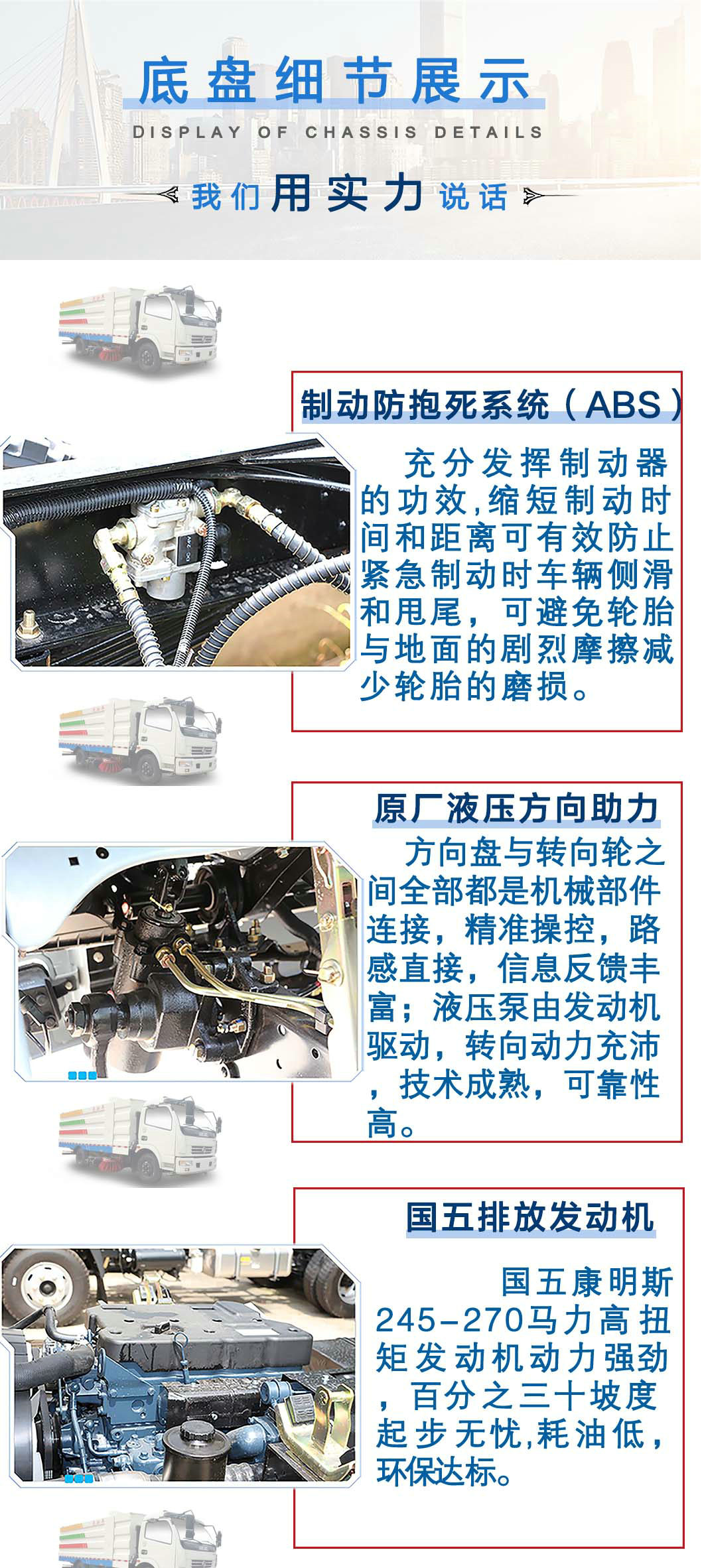 | 其他 | 防護(hù)材料:Q235A碳鋼,連接方式:左右側(cè)面防護(hù)豁免,后下部防護(hù)與副梁采用焊接連接,后下部防護(hù)尺寸:50×100(mm),離地面高度400mm。隨底盤選裝前面罩,前保險杠,前組合燈具.ABS型號:ABS/ASR-24V-4S/4M,ABS型號廠家:襄陽東風(fēng)隆誠機(jī)械有限責(zé)任公司。文字噴圖位置和車輛顏色可變化。 | ||