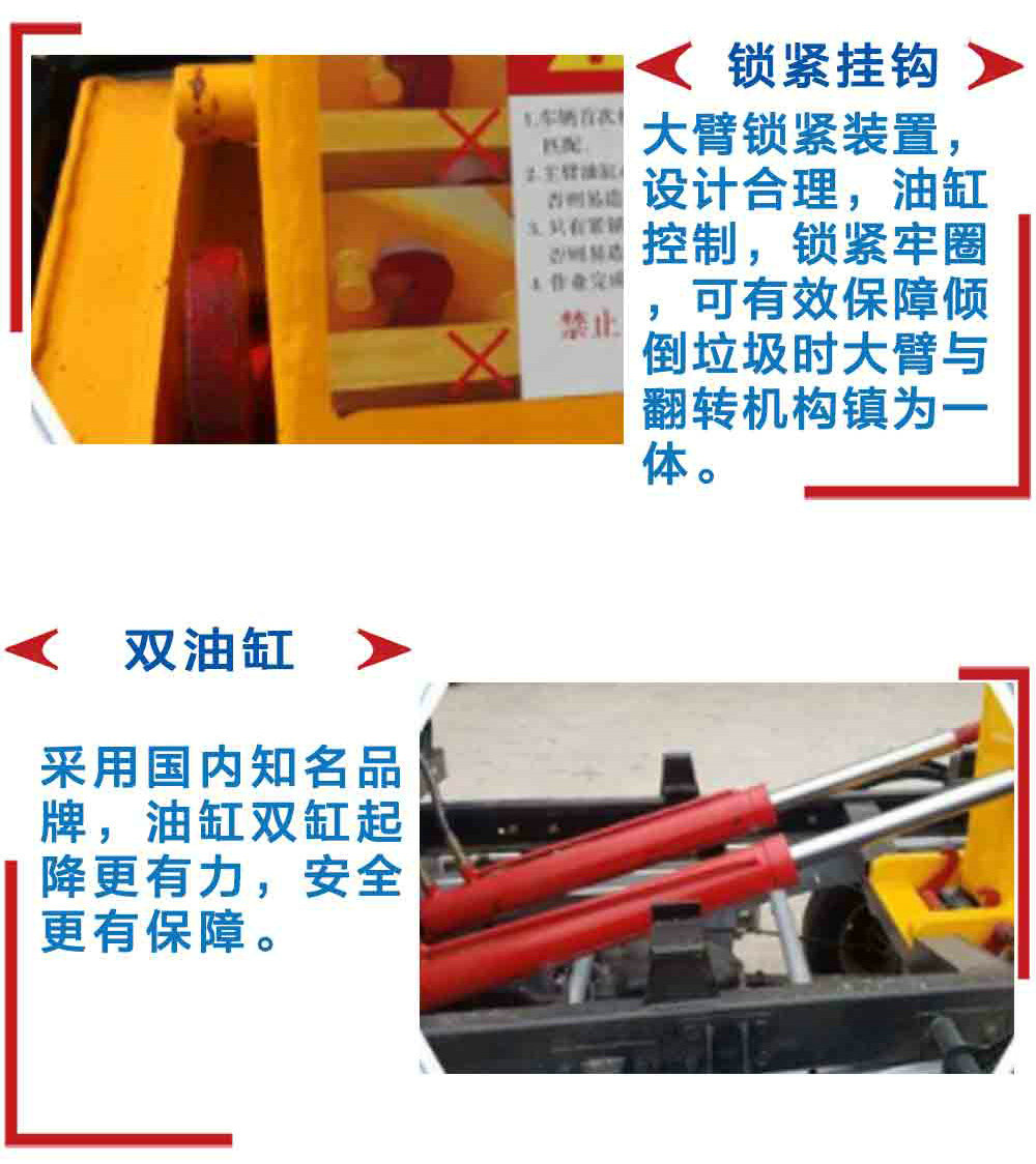 | 其他 | 1、防護材料:Q235A碳鋼,連接方式:左右側面防護與副梁均采用焊接連接,后下部防護與車架采用焊接連接,后部防護斷面尺寸(mm):150×50,后部防護離地高度(mm):430。2、整車長度/前懸/軸距對應關系為(mm):8850/1450/4750+1300,8650/1250/4750+1300,8450/1450/4350+1300,8250/1250/4350+1300。3、采用的發動機型號與油耗值對應關系為(L/100km): ISB210 50(34.1);YC6JA240-50(34.1)。4、隨底盤選裝駕駛室。5、ABS型號為3631010-C2000,生產廠家為東科克諾爾商用車制動系統(十堰)有限公司,安裝帶有衛星定位功能的行駛記錄儀。6、車輛顏色、文字噴涂及局部細節可變化。7、專用裝置:拉臂機構,主要用于城鎮環衛垃圾的收集與運輸。 | ||