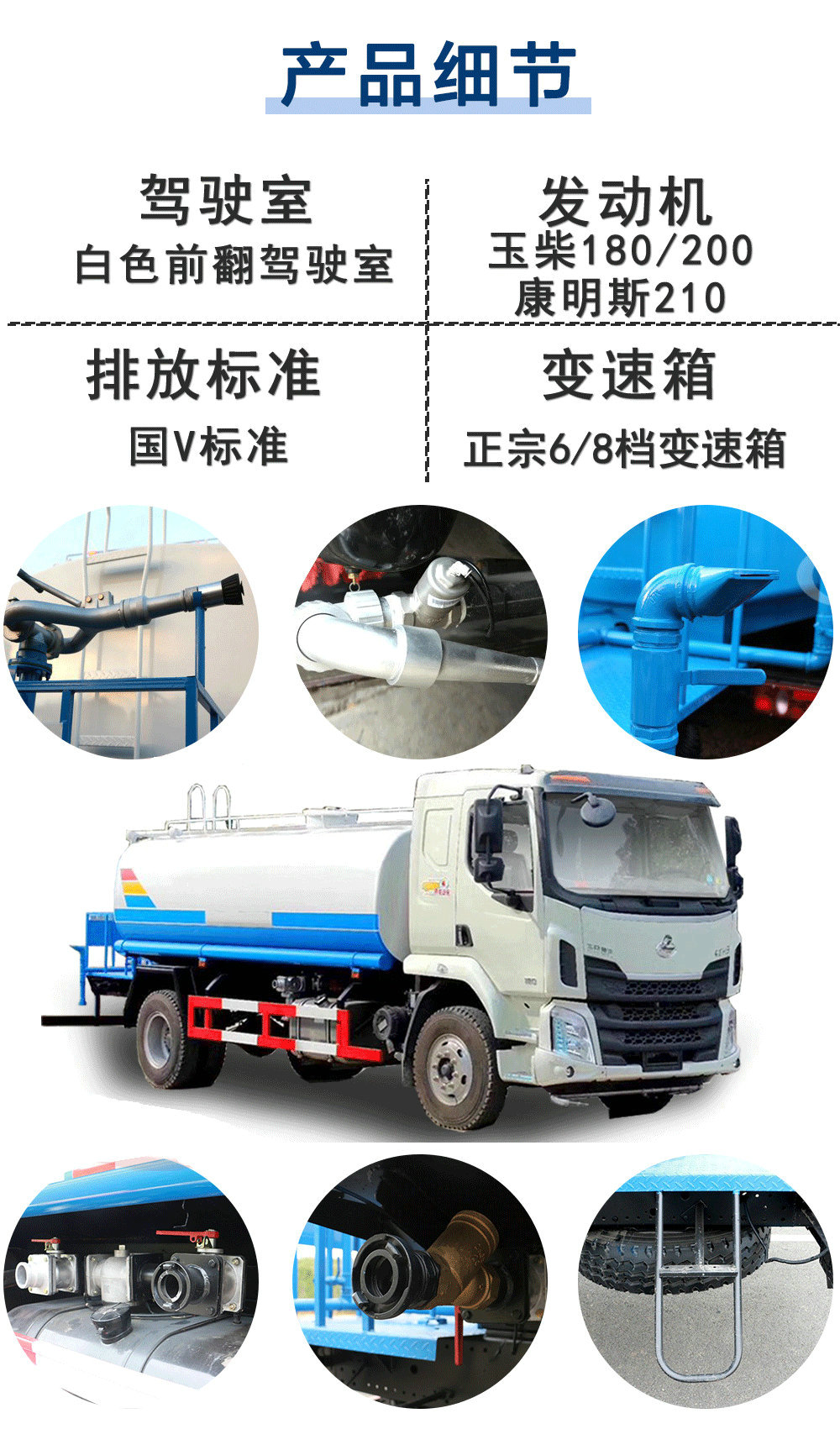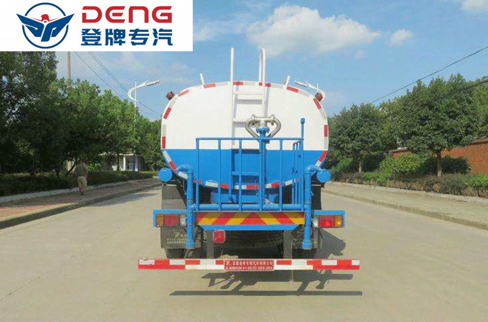 上裝配置:罐體采用4mmQ235優(yōu)質(zhì)碳鋼板制作,容積12立方,前沖(噴)后灑,帶側(cè)噴,罐體后帶工作平臺(tái),平臺(tái)上安裝綠化灑水炮,灑水炮可全方位旋轉(zhuǎn),可連續(xù)調(diào)成直沖狀、大雨、小雨、毛毛雨,帶安全護(hù)欄,配備全國(guó)質(zhì)量評(píng)比第一名的億豐大功率專用灑水泵,泵可自吸自排,安裝過(guò)濾網(wǎng),帶消防接口,可通過(guò)消防栓進(jìn)水,帶自流閥,罐體金屬漆。