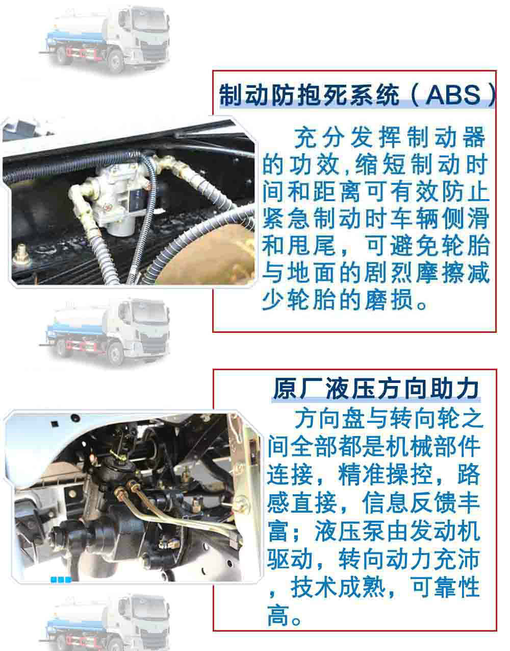 2.產(chǎn)品概述:該車型為東風(fēng)公司最新國(guó)五 排放標(biāo)準(zhǔn)。灑水車專用部分由罐體、水泵、取力器、傳動(dòng)軸、球閥、噴灑裝置等部件組成。采用國(guó)家定型產(chǎn)品,具有性能穩(wěn)定、工作可靠、通用適配等特點(diǎn)。灑水車罐體結(jié)構(gòu)為橢圓形或方圓形,采用武鋼優(yōu)質(zhì)碳鋼制作,先進(jìn)的對(duì)焊接工藝,罐體內(nèi)設(shè)防蕩防波隔板,下端有通孔,罐體成型后高壓氣體試漏檢測(cè),使罐體具有強(qiáng)度高、重心穩(wěn)、車輛運(yùn)載安全平穩(wěn)等特點(diǎn)。