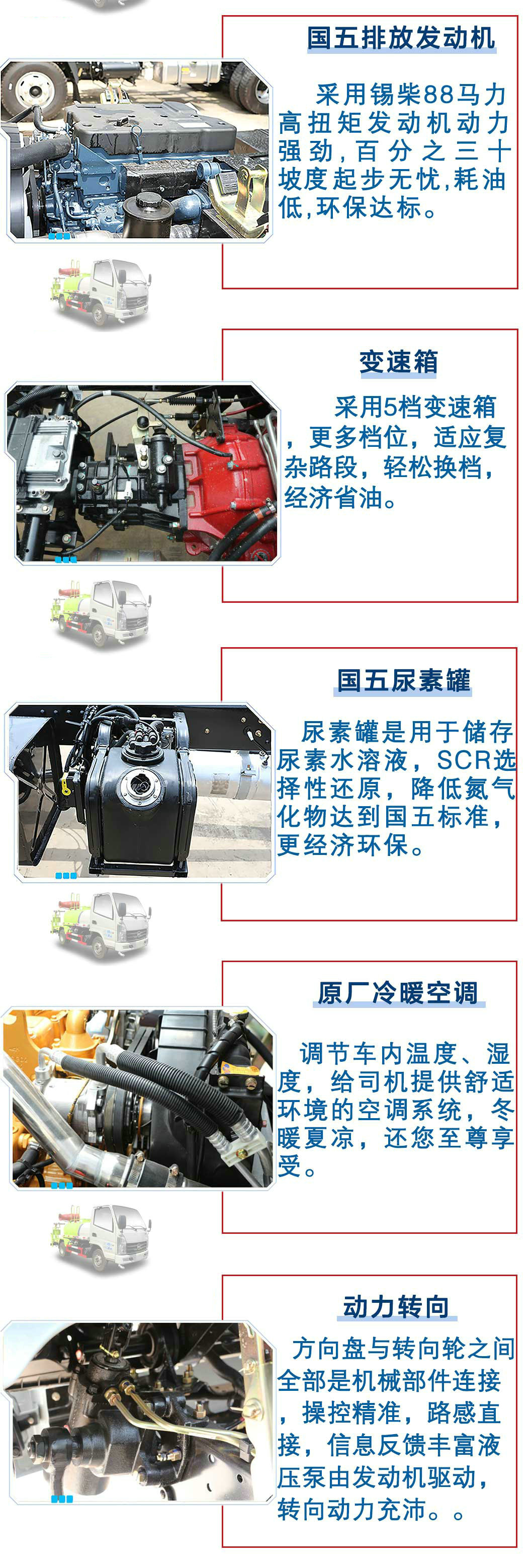| 其他 | 罐體有效容積:1.56立方米,罐體外形尺寸(長×長軸×短軸)(mm):2300×1250×800;側防護采用冷彎型鋼/Q235,螺栓連接;后防護采用冷彎型鋼/Q235,焊接,截面高120mm,截面寬50mm,下邊緣離地高380mm;隨底盤選裝駕駛室,選裝后部平臺噴霧裝置; ABS型號:CM4XL-4S/4K(4S/4M),ABS生產廠:廣州科密汽車電子控制技術股份有限公司.該車主要用于城鄉園林綠化灑水、噴藥等;主要專用裝置為罐體,管道系統、噴灑裝置及泵 | ||