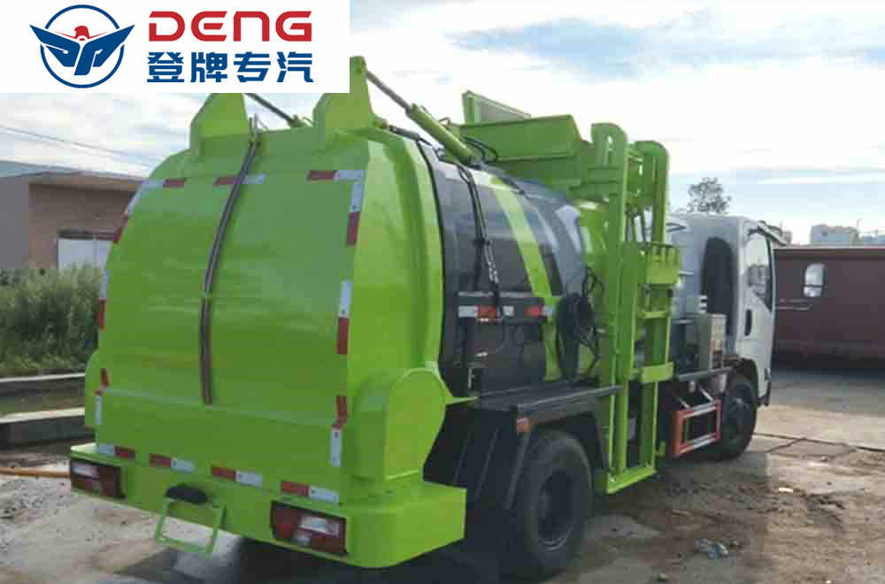 餐廚垃圾車又稱餐余垃圾車余廚余垃圾車或者泔水車,餐廚垃圾車是垃圾車中的一種,是用于收集和運輸生活垃圾、食品垃圾(泔水)及城市淤泥的專用車輛。 餐廚垃圾車標準配置:圓形碳鋼罐體,罐體厚度5mm,拉桿提升機帶上蓋聯動;后蓋液壓開啟;罐體舉升自卸。選裝內軒推鏟卸料,帶渣液分離功能。餐廚垃圾車可分罐式和廂式。 餐廚垃圾車特點:改裝部分具有裝、卸垃圾自動化程度高、工作可靠、密封性好、裝載容積大、操作簡便、作業過程密閉,無污水泄露和異味的散發,環保性好等特點??膳溲b載不同規格的標準垃圾桶,具有廣泛的適用性。餐廚垃圾車高效、清潔的是垃圾收、運專用車輛。