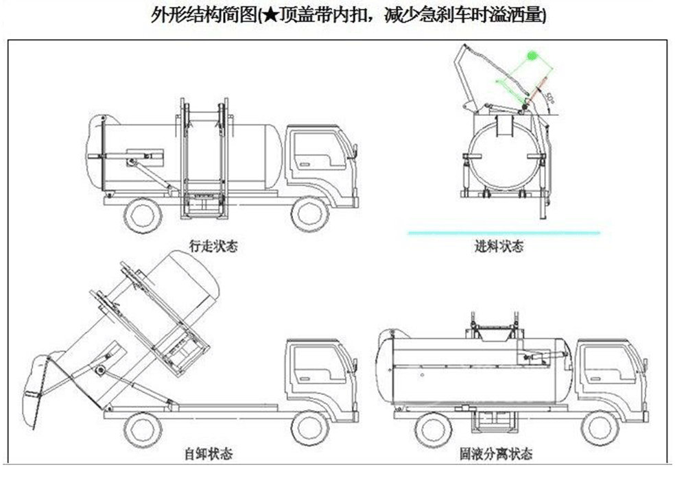 | 其他 | 車輛裝有側裝垃圾桶升降裝置,封閉式垃圾罐等裝置,用于餐廚垃圾收集,轉運及卸料作業.防護材料:Q235碳鋼,連接方式:左右側面及后下部防護均采用焊接連接,后部防護裝置斷面尺寸(寬×高)60×120(mm),后部防護離地高度(mm):520(mm).隨底盤選裝駕駛室.裝有具有衛星定位的行車記錄儀.ABS型號:3631010-C2000,4460046440;生產廠家:東科克諾爾商用車制動系統(十堰)有限公司,威伯科汽車控制系統(中國)有限公司. | ||