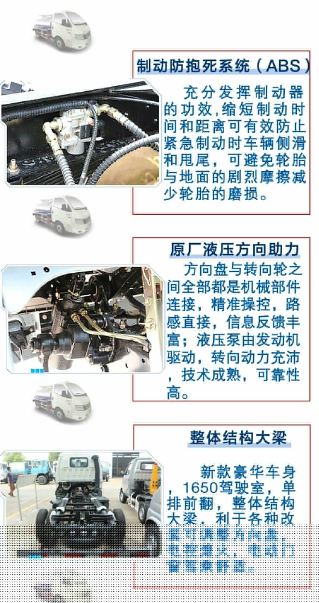 其他 1,介質:液態污物和糞便,密度:800千克/立方米,罐體有效容積:2.07立方米,罐體外形尺寸(長×長軸×短軸)(mm): 2600×1300×900。2,防護材料:Q235A,連接方式:側防護與副梁焊接連接,后防護與車架焊接連接,后部防護斷面尺寸(mm):200×50,后部防護離地高度(mm):500。3,ABS系統控制器型號:YF8,ABS系統控制器生產企業:武漢元豐汽車電控系統有限公司。4,車輛顏色,文字噴涂及局部細節可變化。