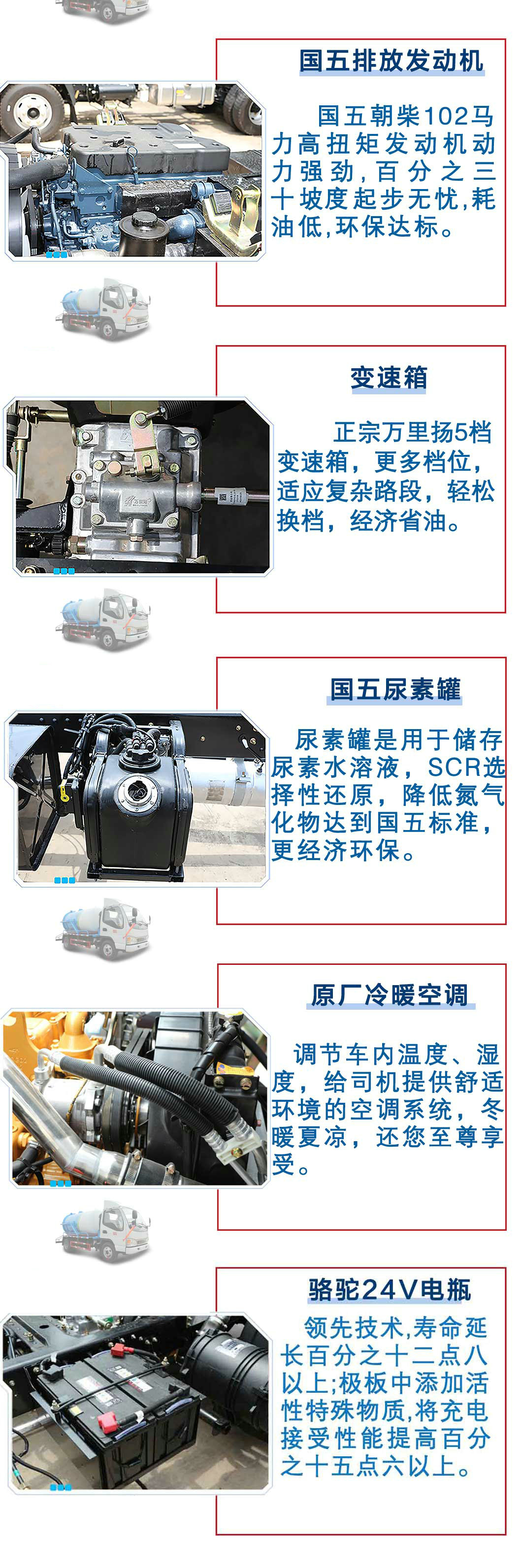 | 其他 | 1、運輸介質:液態污物,密度:800千克/立方米;罐體有效容積:4.25立方米;罐體外形尺寸(直段長×直徑)(mm):3400×1200。2、選裝側面和后面管道,防護材料:Q235A碳鋼,連接方式:左右側面及后下部防護均采用焊接連接,后部防護斷面尺寸(mm):100×50。后部防護離地高度(mm):400。3、車輛顏色、文字噴涂及局部細節可變化。4、ABS廠家及型號:廣州科密汽車電子控制技術股份有限公司 /CM4XL-4S/4M。 | ||