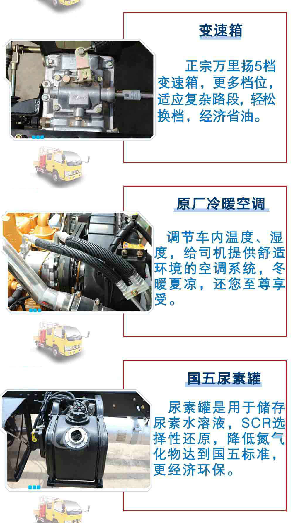 整車配置:江鈴(新款)雙排工程黃駕駛室,軸距3360mm,江鈴115馬力國五發動機JX493ZLQ4 (環保),油剎,五檔變速箱,7.00R16鋼絲胎,帶ABS.加裝空調。作業高度8米、10米、12米,帶兩個液壓支腿,吊藍額定載荷小于或等于500KG,工作壓力14MPA,帶油缸鎖定功能。