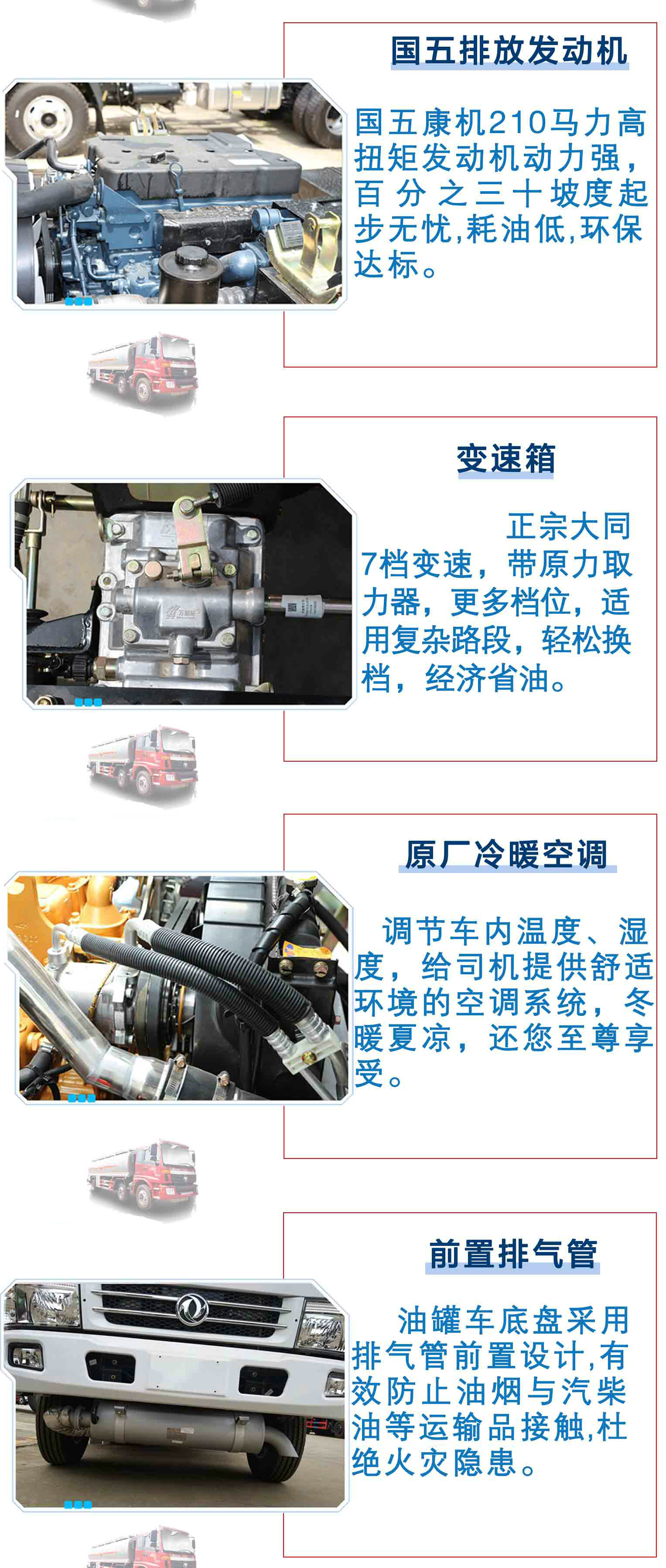 | 其他 | 該車適用于危險(xiǎn)品運(yùn)輸,類項(xiàng)號(hào):3;罐體有效容積:24.6立方米, 罐體外形尺寸(長(zhǎng)/長(zhǎng)軸/短軸)(mm):7900/2450/1750。防護(hù)材料:Q235A碳鋼,連接方式:左右側(cè)面防護(hù)采用焊接連接,后下部防護(hù)采用螺栓連接,后部防護(hù)斷面尺寸(mm):135×50,后部防護(hù)離地高度(mm):435。僅采用底盤子午線輪胎和帶ABS的底盤; 該車前輪安裝盤式制動(dòng)器,前置排氣管,裝配限速裝置,限速80km/h。安裝帶有衛(wèi)星定位功能的行駛記錄儀。ABS系統(tǒng)的生產(chǎn)企業(yè):東風(fēng)電子科技股份有限公司;ABS系統(tǒng)型號(hào):ABS/ASR-24V-4S/4M(控制器型號(hào):3550X-1010)。車輛顏色可選,文字噴涂位置可變化。油耗對(duì)應(yīng)關(guān)系(L/100km):37.37(ISD245 50),37.36(ISD210 50),29.88(ISB210 50)。隨底盤選裝前圍裝飾件。危險(xiǎn)貨物運(yùn)輸車輛的車輛類型(FL型車輛)。 | ||