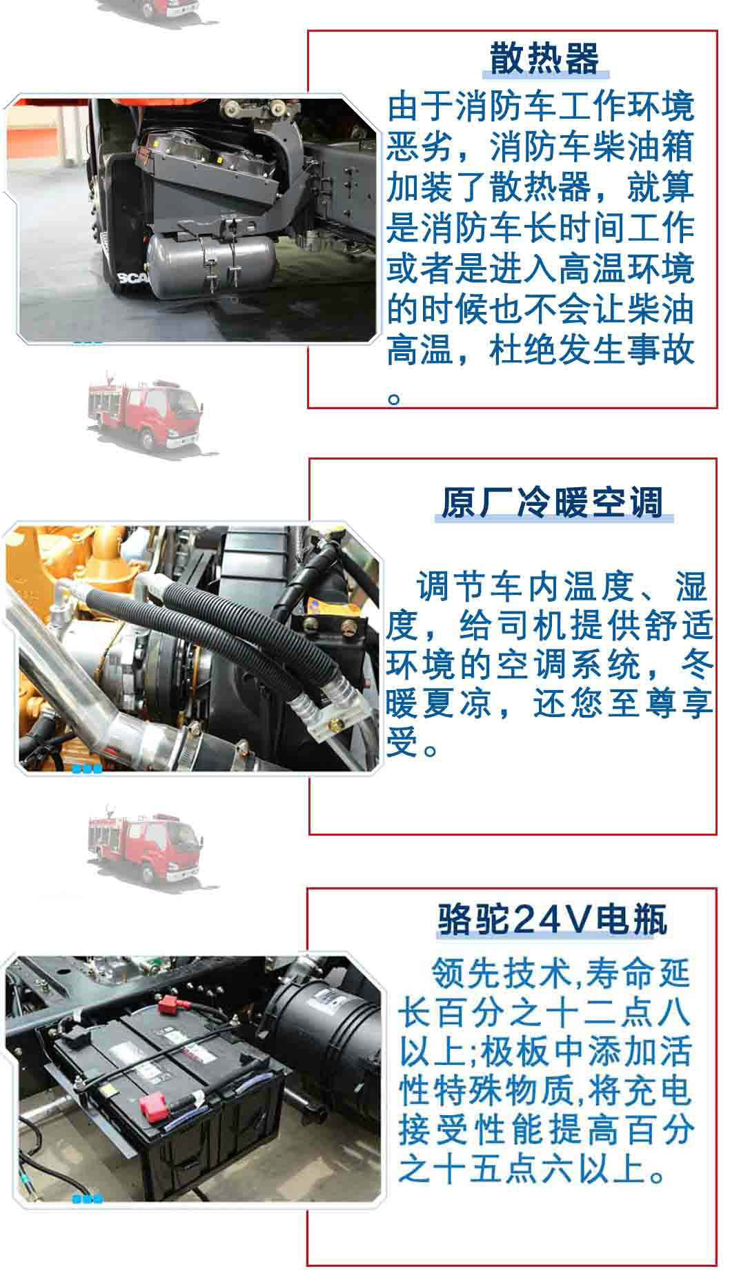 | 其他 | 罐體總容積:2.940立方米,水罐容積:2.440立方米,水罐尺寸:1060×1920×1250mm;泡沫液罐容積0.500立方米,泡沫液罐尺寸:500×1660×628mm。后伸:130mm,整體式側,后防護結構,后防護離地高度:475mm。ABS型號:APG3550500H1,ABS生產企業:浙江亞太機電股份有限公司。 | ||