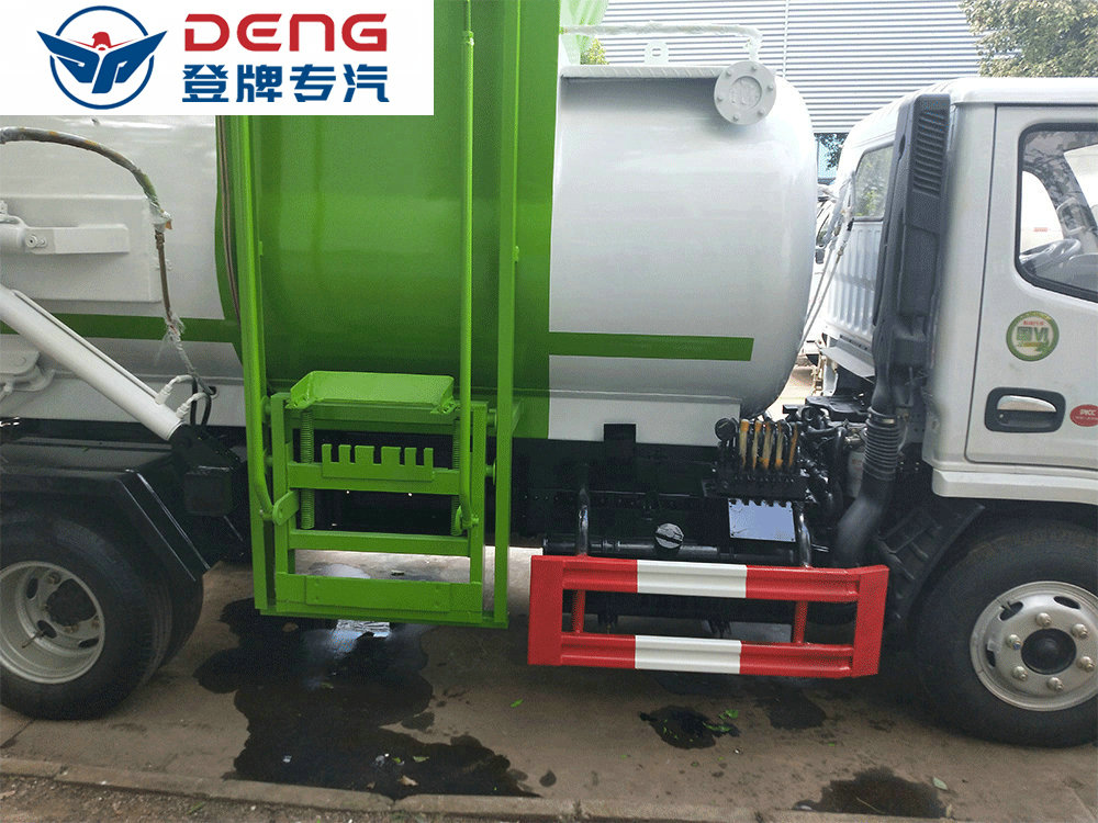 其他 1、僅選用3308mm軸距底盤改裝。2、該車可選裝內部卸料裝置,不影響整車外觀,但會引起整車重量變化,當無推板卸料裝置時,整車整備質量/額定載質量對應關系為(kg):4370/2860;當帶推板卸料裝置時整車整備質量/額定載質量對應關系為(kg):4800/2430。3、防護材料:Q235B碳鋼,連接方式:左右側面及后下部防護均采用焊接連接,后下部防護斷面尺寸(mm):120×50,后下部防護離地高度(mm):380。4、ABS型號/廠家:ABS/ASR-12V-4S/4M/襄陽東風隆誠機械有限責任公司。5、專用裝置:側裝垃圾桶提升裝置,主要用于餐廚垃圾收集及轉運。6、隨底盤選裝駕駛室,該車可選裝爬梯,可選裝帶真空吸污裝置上裝外觀。