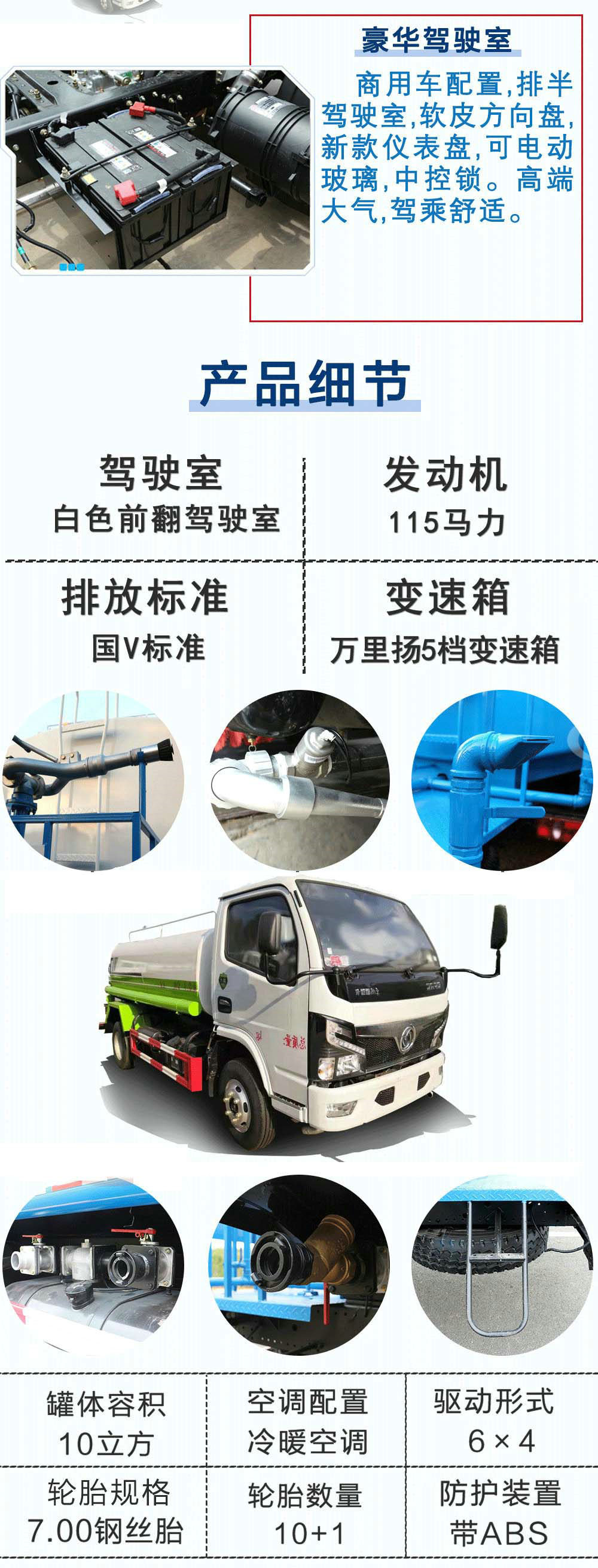 | 其他 | 1、該車僅選用3308mm軸距,罐體有效容積為4.04立方米,罐體尺寸為(mm):3400×1600×1100,3300×1600×1100。2、防護(hù)材料:Q235B碳鋼,連接方式:左右側(cè)面及后下部防護(hù)均采用焊接連接,后部防護(hù)斷面尺寸(mm):120×50,后部防護(hù)離地高度(mm):430。3、ABS型號(hào)/廠家:ABS/ASR-12V-4S/4M/襄陽(yáng)東風(fēng)隆誠(chéng)機(jī)械有限責(zé)任公司。4、專用裝置:罐體,主要用于路面灑水及園林綠化。5、隨底盤選裝駕駛室。 | ||