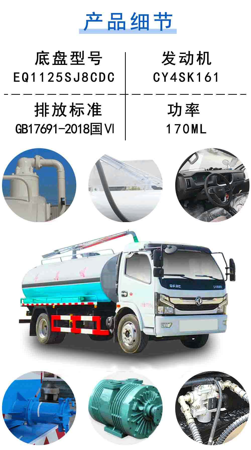 | 其他 | 罐體有效容積:8.13立方米,罐體外形尺寸(mm):4200×2000×1400,此車為吸糞專用作業(yè)車,專用裝置為真空泵.防護材料:Q235A碳鋼,連接方式:左右側(cè)面采用焊接連接,后下部防護采用焊接連接,后部防護斷面尺寸(mm):120×60,后部防護離地高度(mm):490.ABS型號/廠家:ABS型號:ABS/ASR-24V-4S/4M,廠家:襄陽東風(fēng)隆誠機械有限責(zé)任公司,隨底盤選裝駕駛室. | ||