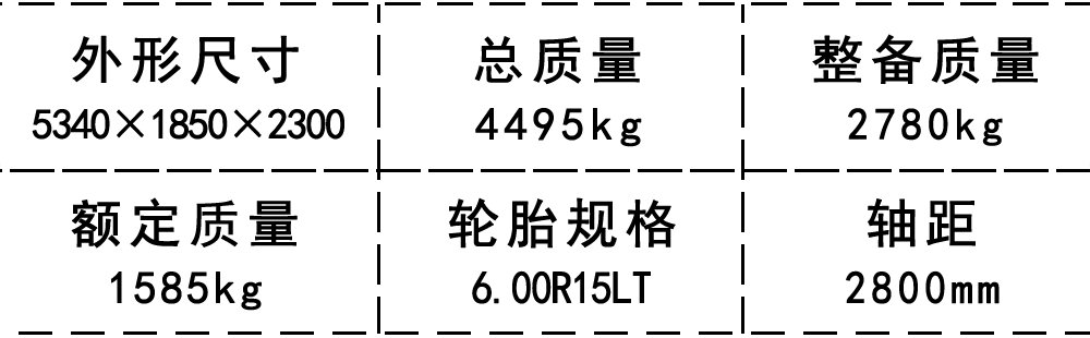 | 總質量(kg) | 4495 | 額定質量(kg) | 1585 |