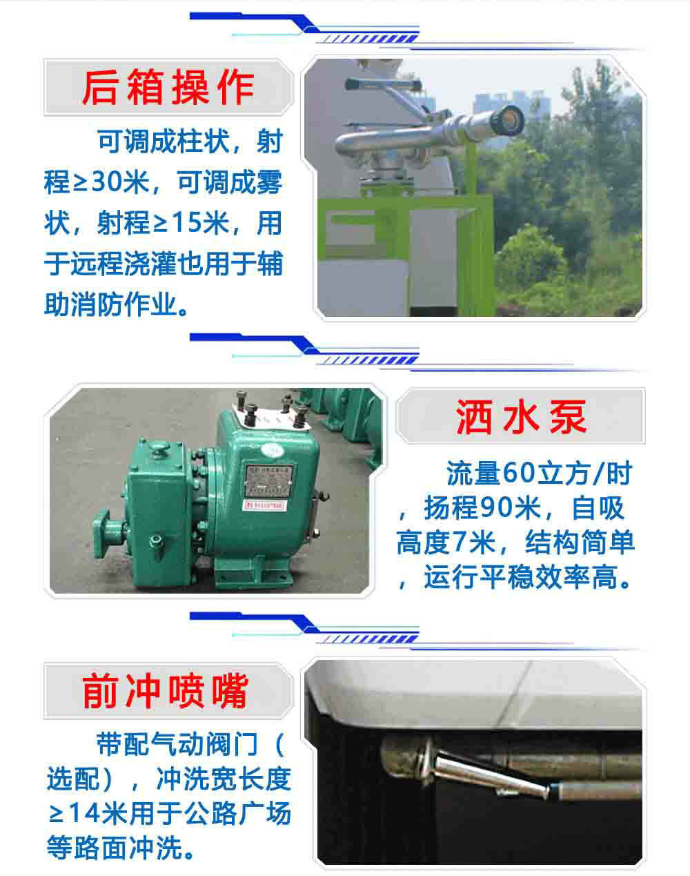 | 其他 | ABS型號:XH-KQ4S4M-E01,CM4XL-4S/4M,VIE ABS-Ⅱ;ABS生產企業:廣州市西合汽車電子裝備有限公司,廣州瑞立科密汽車電子股份有限公司,浙江萬安科技股份有限公司;選裝描述:僅選用WP2.3NQ130E61、D30TCIF1、D25TCIF1、D40TCIF1、WP3NQ160E61發動機;所用材料材質、連接方式以及后部防護裝置的主要尺寸參數(斷面尺寸和離地高度):側面防護材料:Q235A碳鋼.連接方式:左右側面采用焊接連接.后防護裝置材料:Q235A碳鋼,連接方式:采用焊接連接.后部防護斷面尺寸(mm):120×60,后部防護離地高度(mm):370;專用功能及裝置:專用裝置為抑塵霧炮,用于城市抑塵;其他說明:罐體外形尺寸(長度×長軸×短軸)(mm):3000×2050×1350,罐體有效容積7.6立方米.; | ||