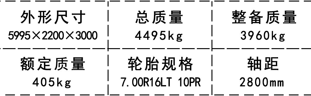 | 軸 距(mm) | 2800,3280,3360,3600 | 后輪距(mm) | 1555,1595,1695,1795 |