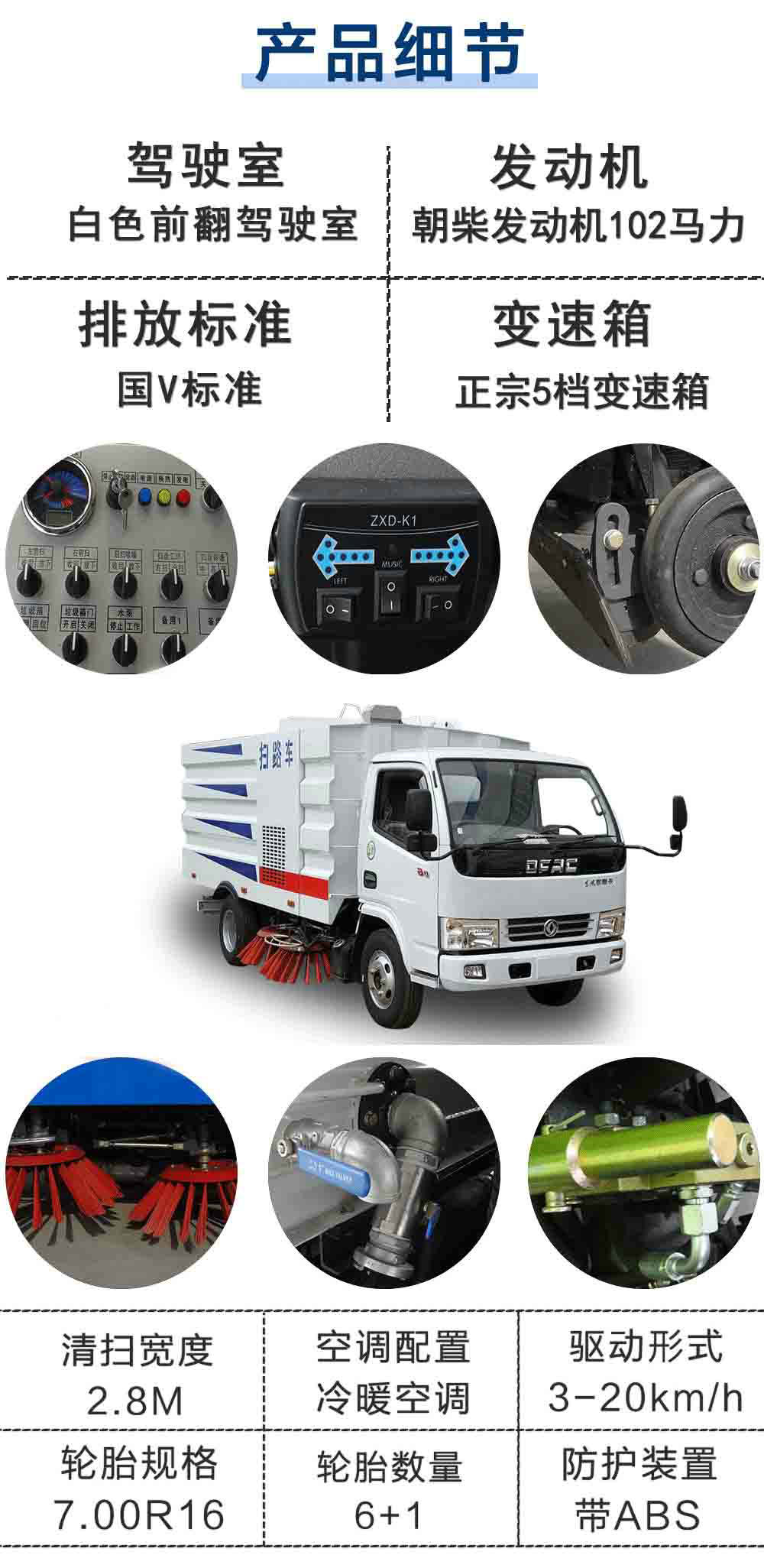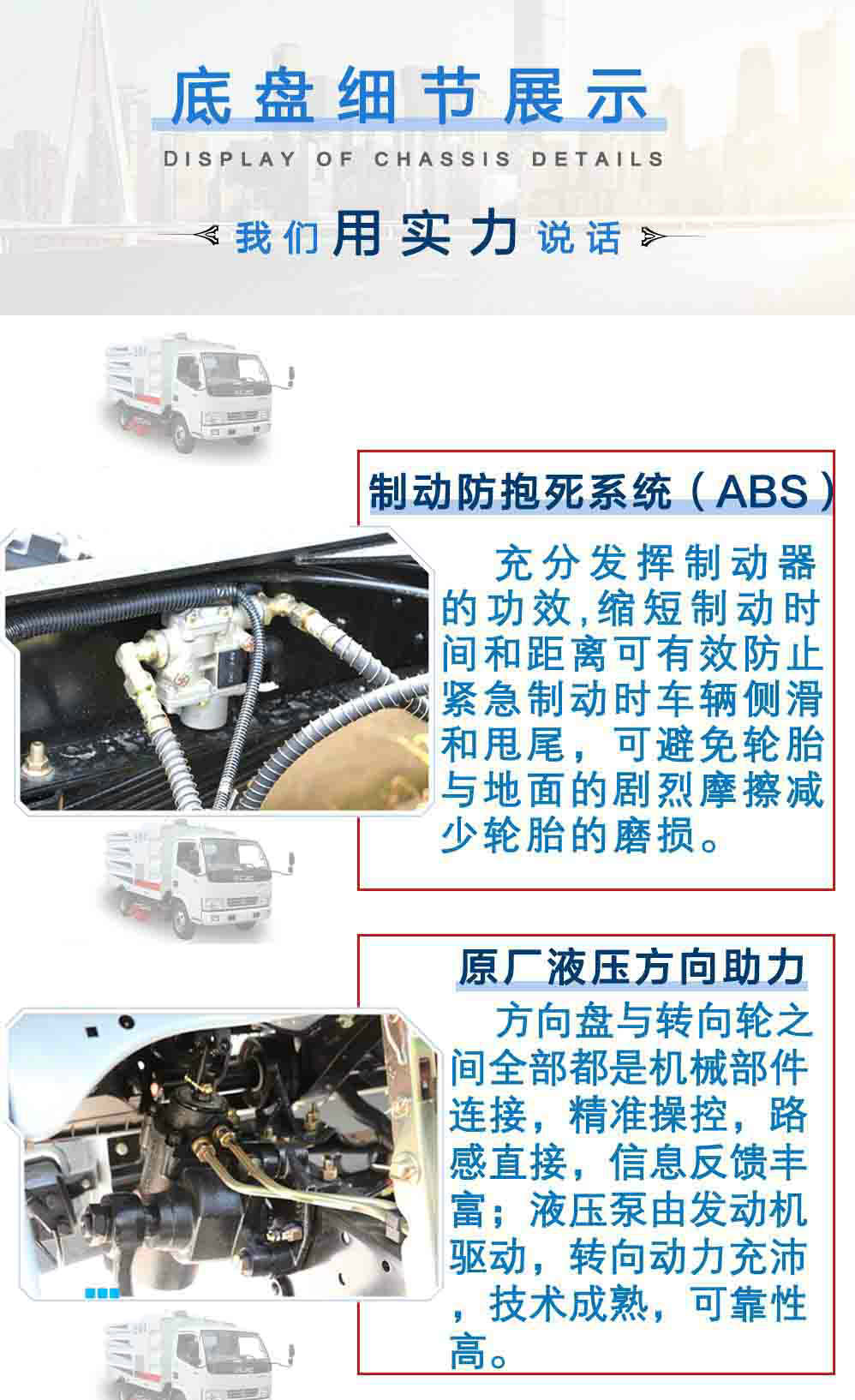 | 其他 | 1、防護材料:Q235A碳鋼,連接方式:左右側面防護裝置與專用裝置相干涉故可豁免;后下部防護裝置與大梁螺栓連接,后部防護斷面尺寸(mm):100×50,后部防護離地高度(mm):380。2、ABS廠家及型號:襄陽東風隆誠機械有限責任公司/ABS/ASR-24V-4S/4M。3、隨底盤選裝前面罩以及前霧燈; 選裝吸塵盒和單個掃地刷裝置,上裝選裝新型外形樣式。4,文字噴涂位置和車輛顏色可變化。5、整車長/軸距/后懸的對應關系(mm)為:6200/3308/1852,5950/3308/1602。 | ||