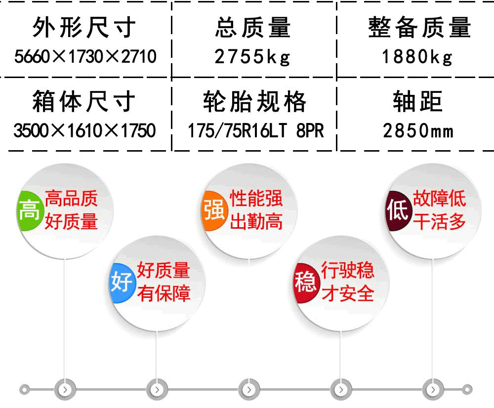 | 其他 | 1.貨廂頂部封閉,不可開啟;2.發(fā)動(dòng)機(jī)LJ4A15Q6對(duì)應(yīng)的油耗申報(bào)值(L/100km)為9.0;2.ABS控制器型號(hào)/廠家:YF8/武漢元豐汽車電控系統(tǒng)有限公司;4.選裝右側(cè)不開門貨箱;5.選裝導(dǎo)流罩;6.選裝貨箱外部結(jié)構(gòu)。 | ||